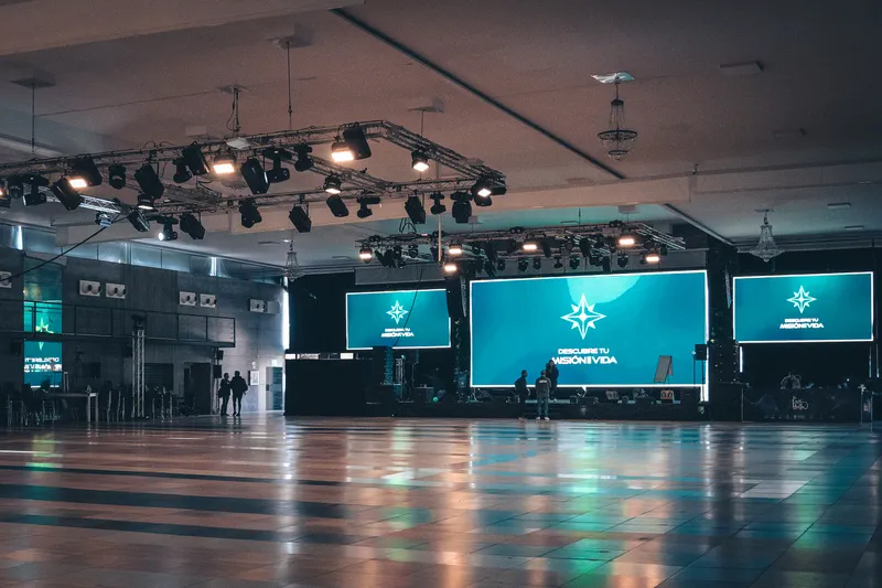 Nos adaptamos a cualquier espacio: auditorios, recintos feriales, hoteles, salas de conferencias, espacios abiertos… Y aportamos soluciones técnicas innovadoras para transformar cada lugar en un escenario impactante y funcional.